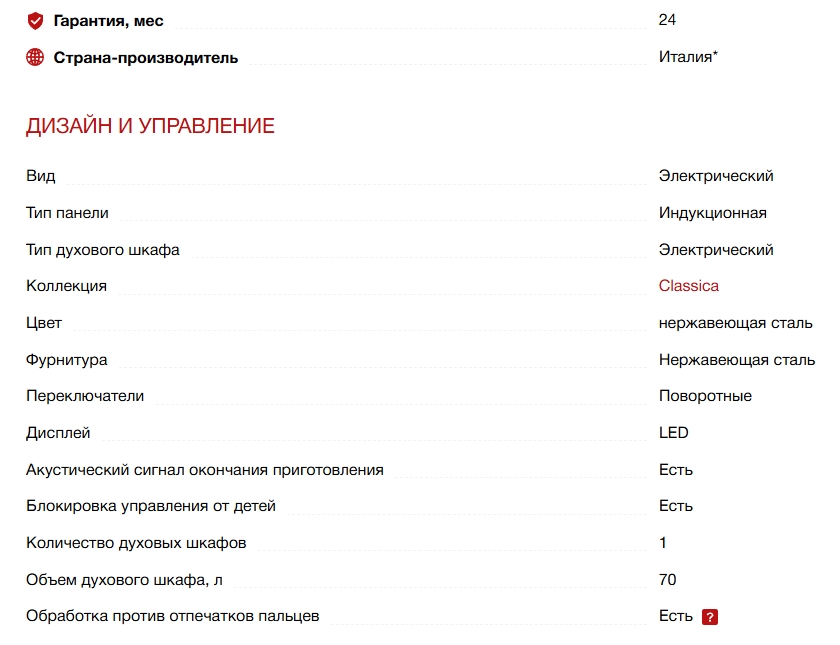 Число индукционных конфорок |