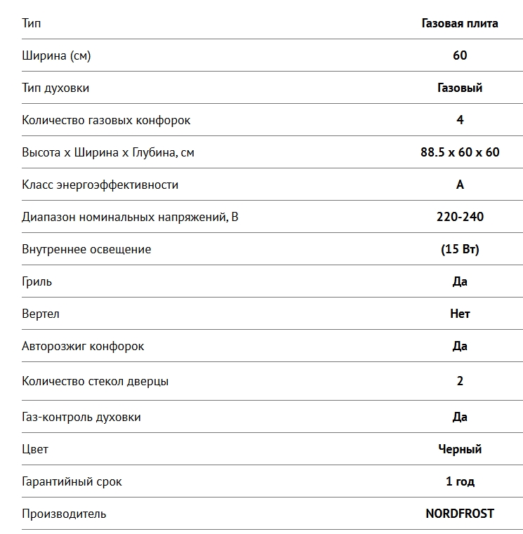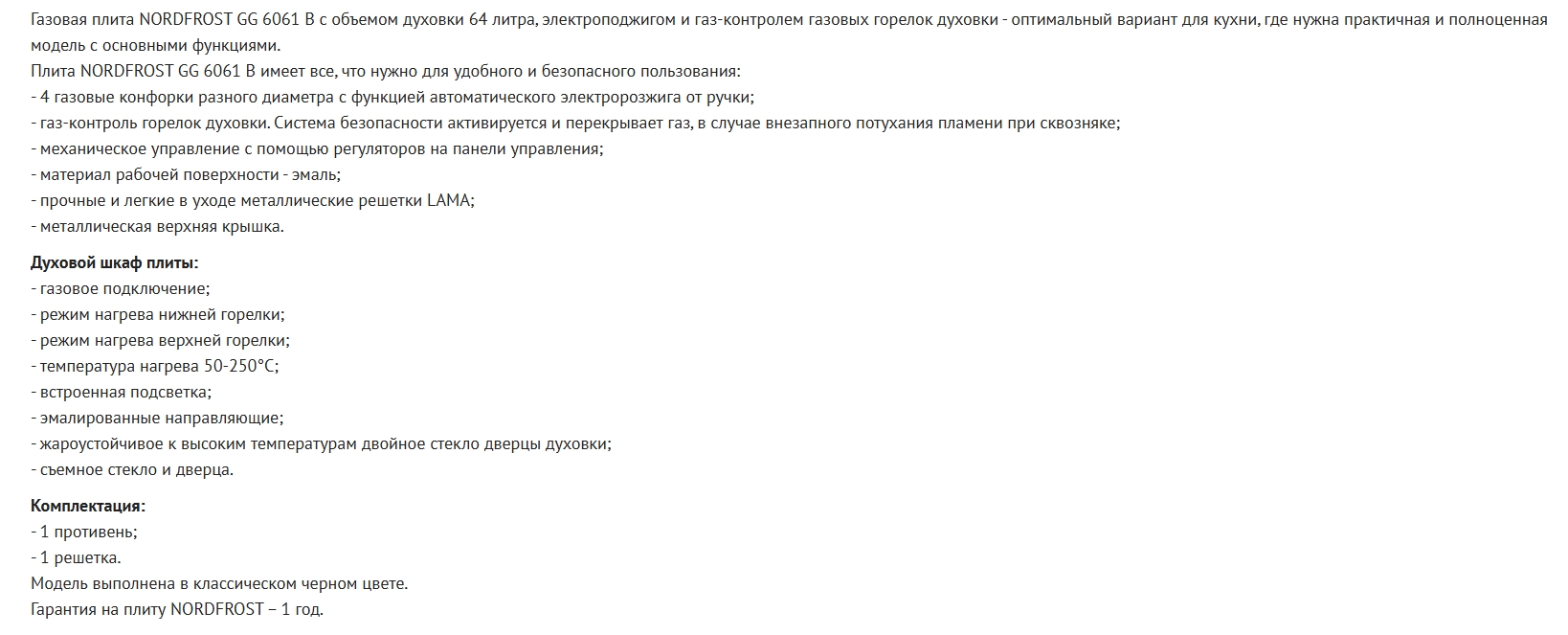 Газовая плита NORDFROST (Нордфрост) GG 6061 B