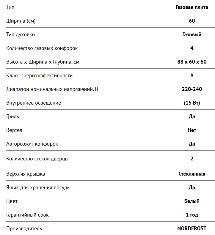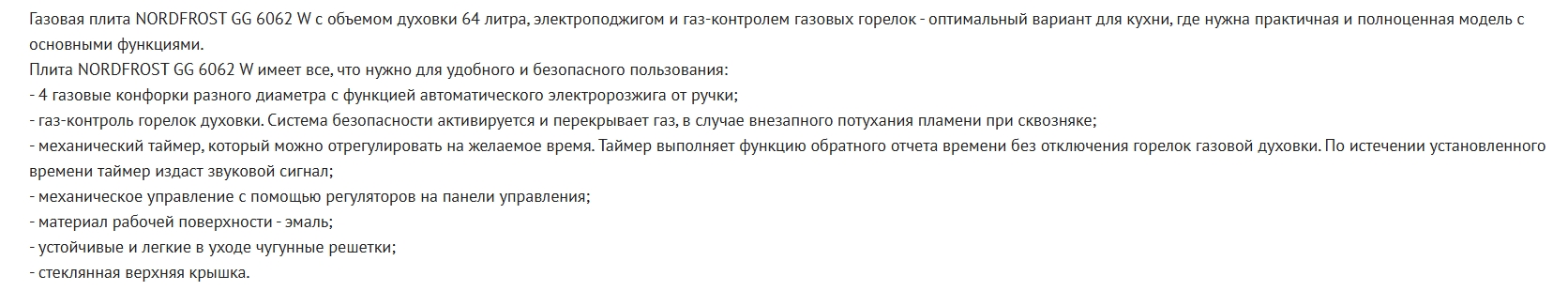 Газовая плита NORDFROST (Нордфрост) GG 6062 W