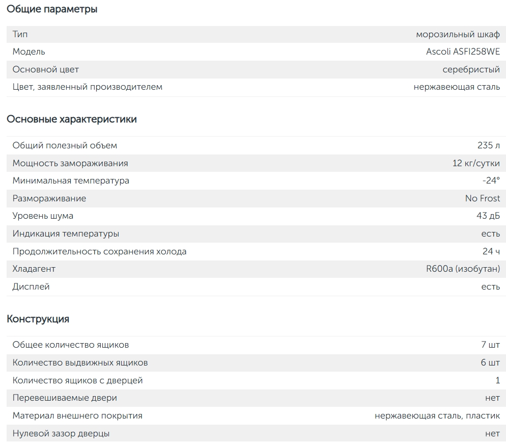Морозильная камера Ascoli (Асколи) ASFI258WE