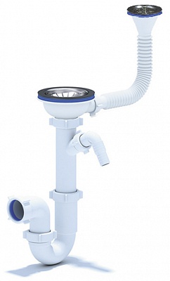 Комплектация Отводная арматура с выпуском 3 ? ” (D=90 мм) и горизонтальным переливом 2,48 ‘‘ (d63 мм)