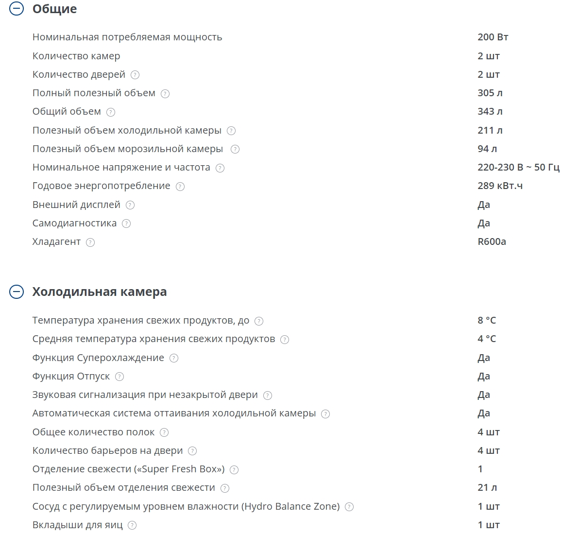 Объем холодильной камеры |