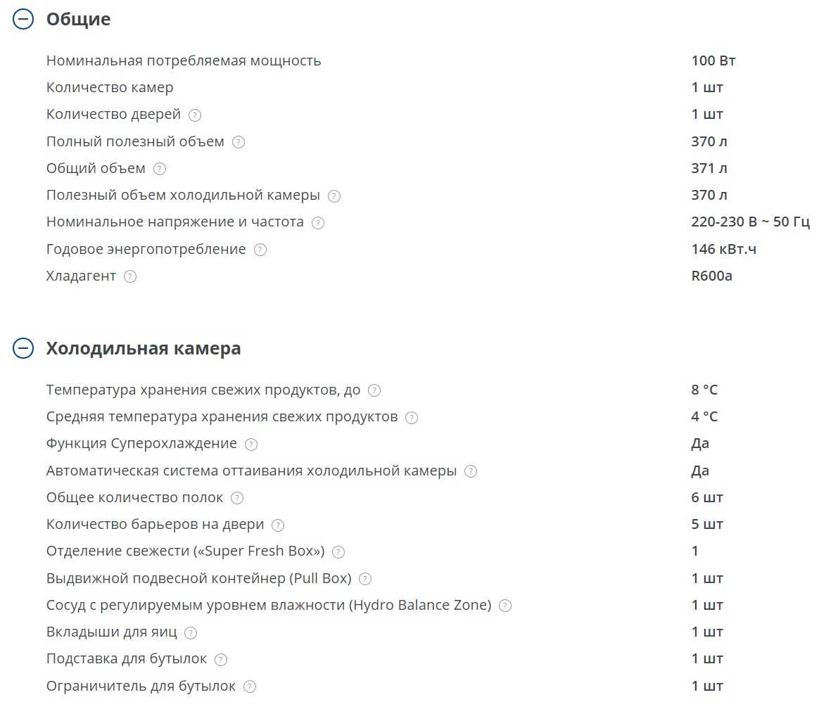 Объем холодильной камеры |