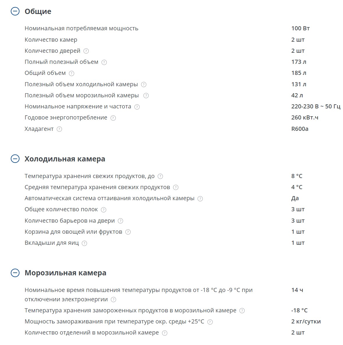 Объем холодильной камеры |