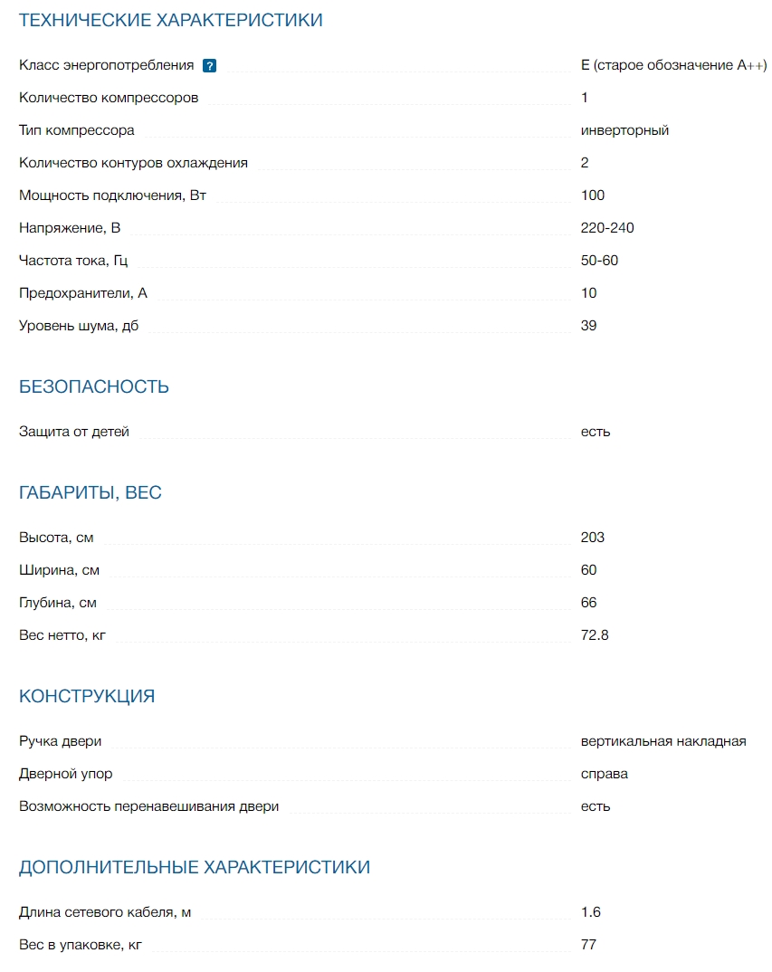 Наличие морозильной камеры |