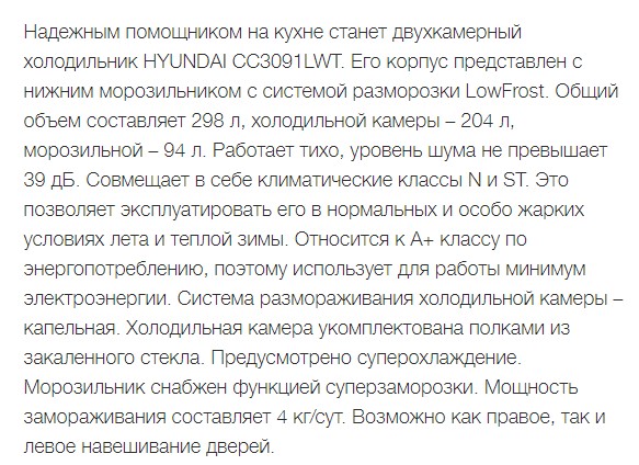 Холодильник Hyundai (Хёндэ) CC3091LWT