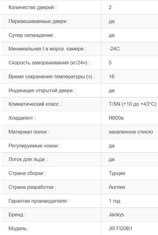 Холодильник Jacky's (Джекис) JR FI20B1