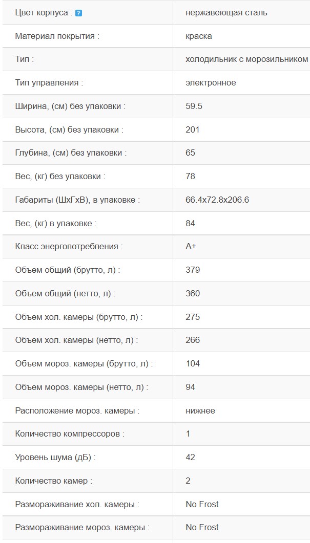 Наличие морозильной камеры |