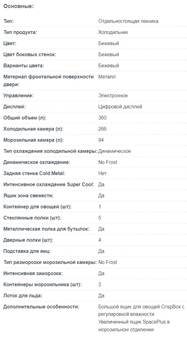 Наличие морозильной камеры |
