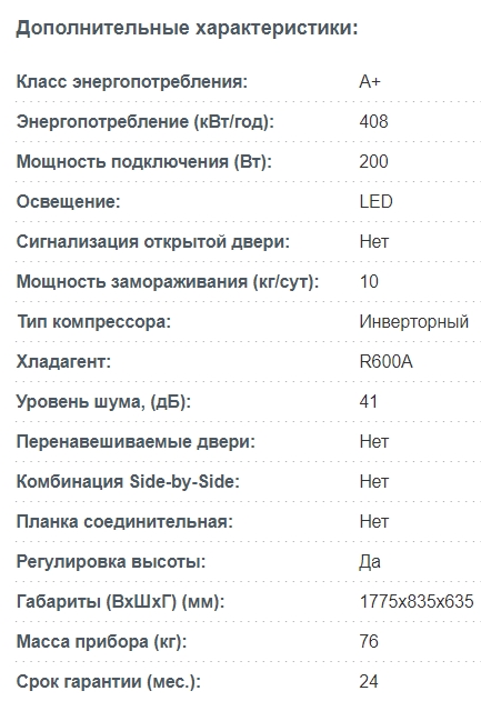Наличие морозильной камеры |