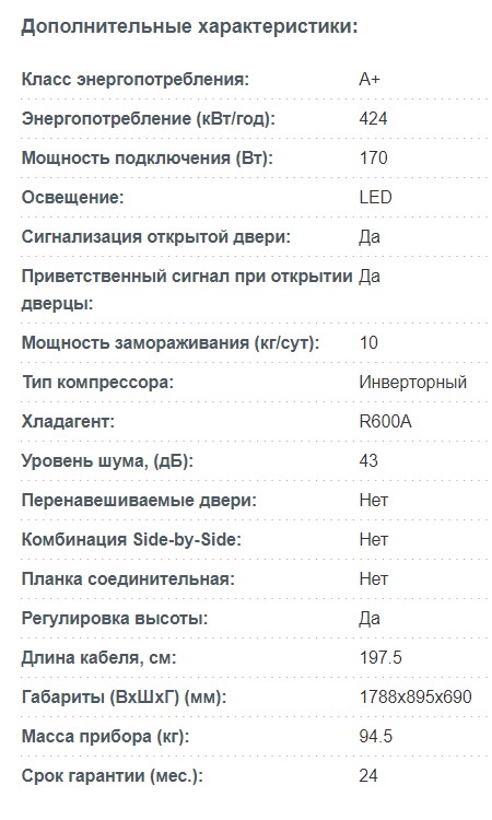 Наличие морозильной камеры |