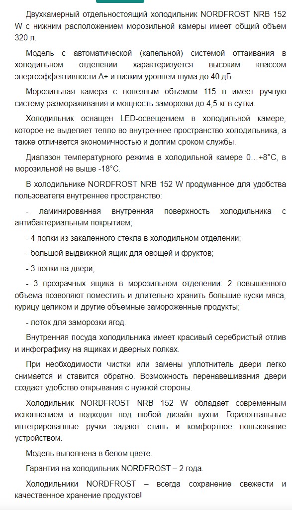 Холодильник NORDFROST (Нордфрост) NRB 152 W