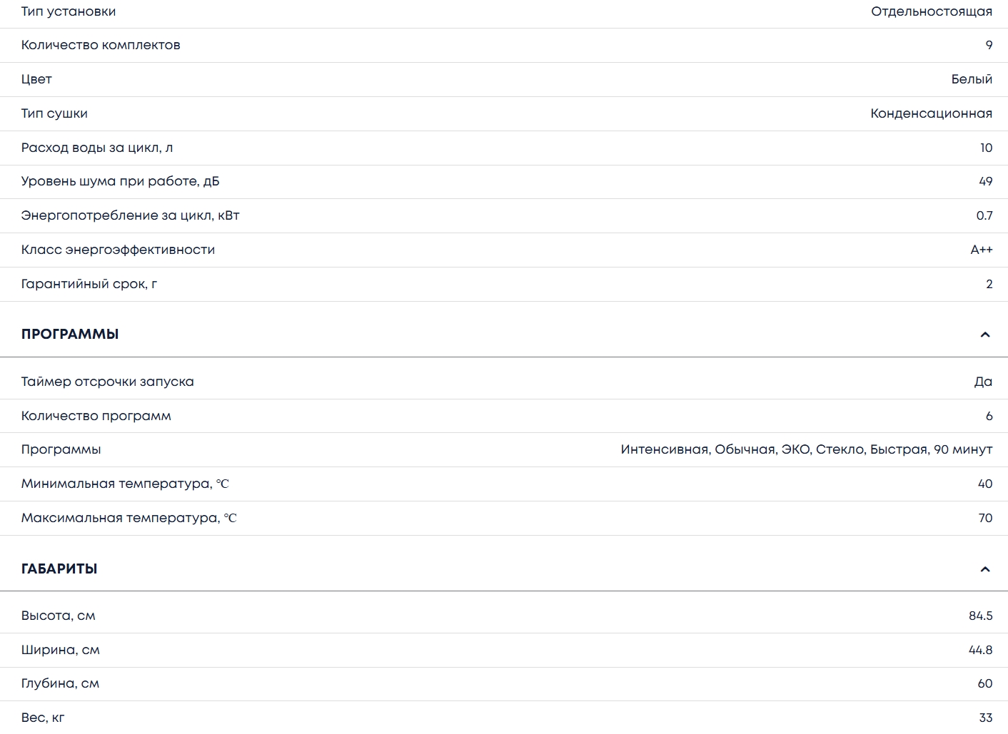Количество программ мойки |