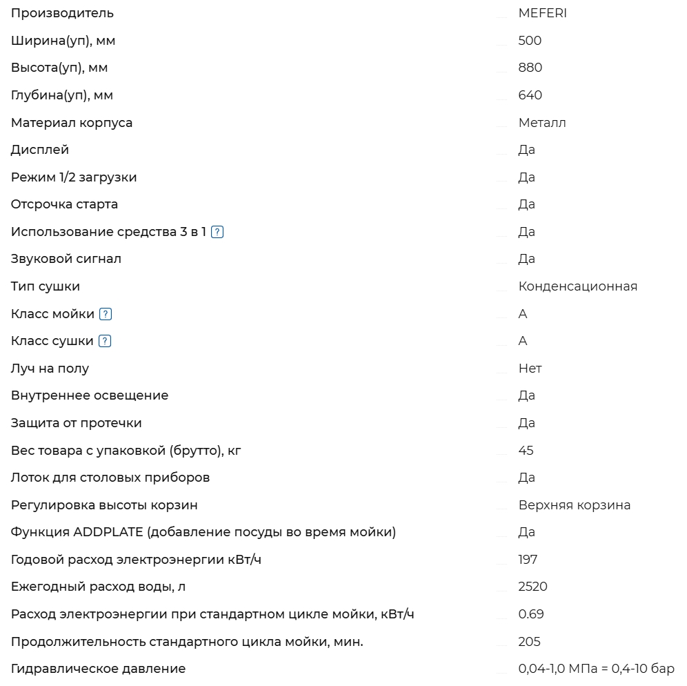 Посудомоечная машина Meferi (Мефери) MDW4562WH FS LIGHT