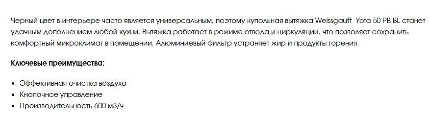 Вытяжка Weissgauff (Вайсгауф) Yota 50 PB BL