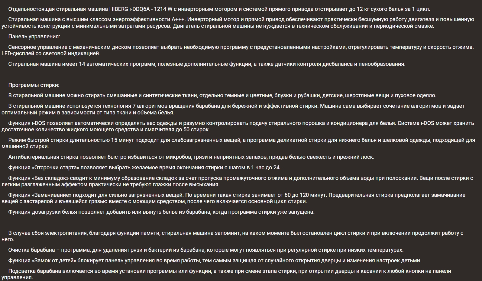 Стиральная машина Hiberg (Хайберг) i-DDQ6A - 1214 W