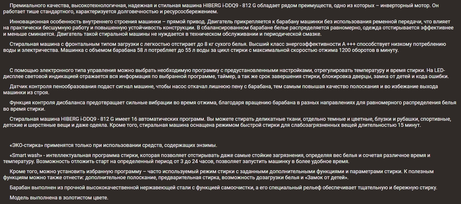 Стиральная машина Hiberg (Хайберг) i-DDQ9 - 812 G