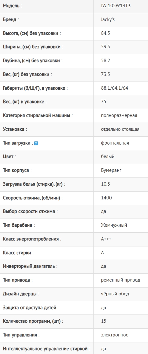 Стиральная машина Jacky's (Джекис) JW 105W14T3