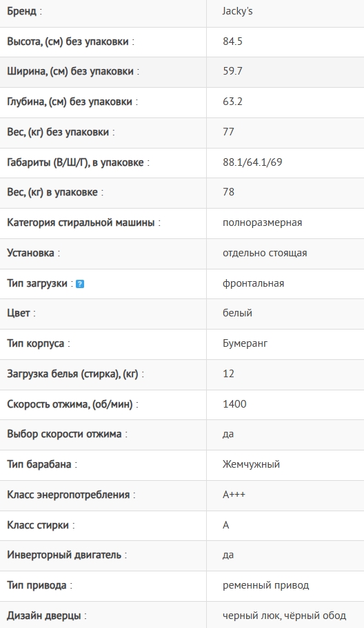 Стиральная машина Jacky's (Джекис) JW 12W14T3