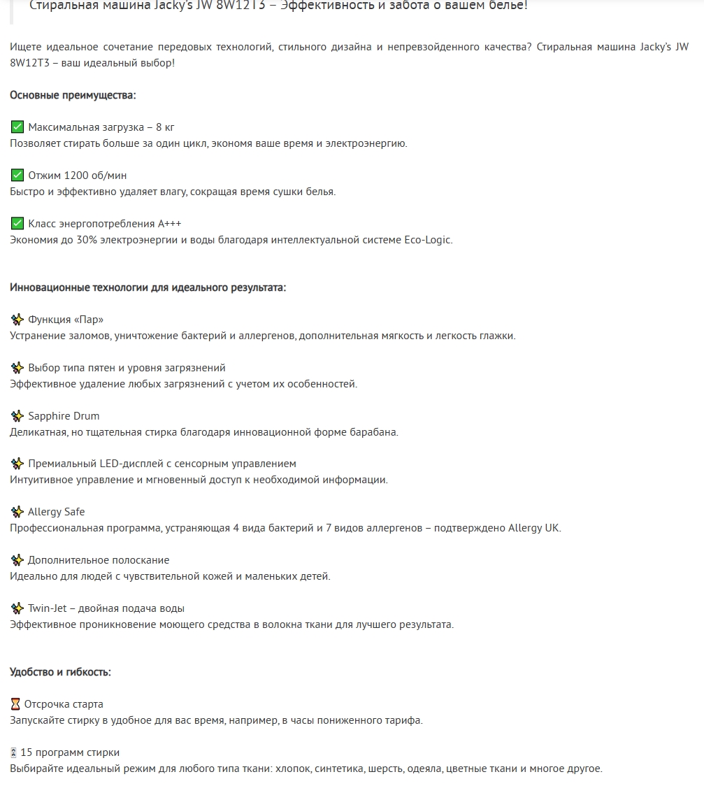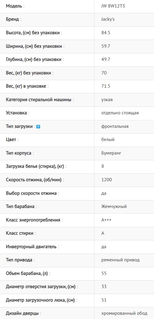 Стиральная машина Jacky's (Джекис) JW 8W12T3