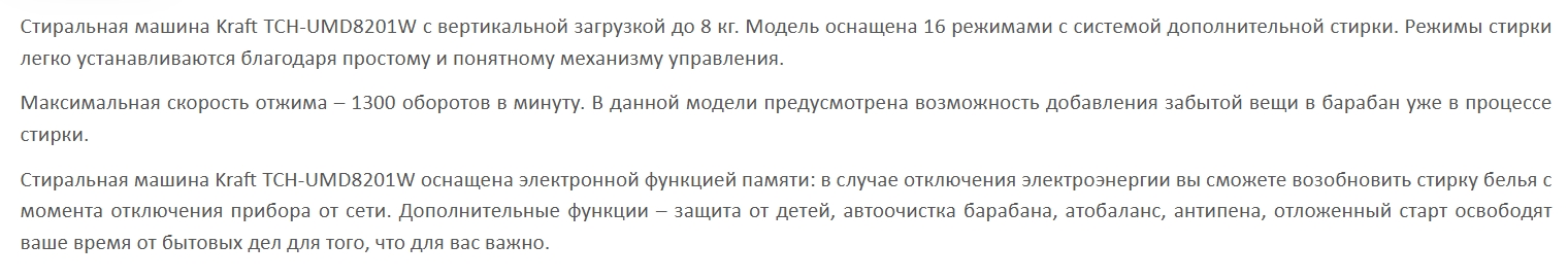 Стиральная машина Kraft (Крафт) TCH-UMD8201W