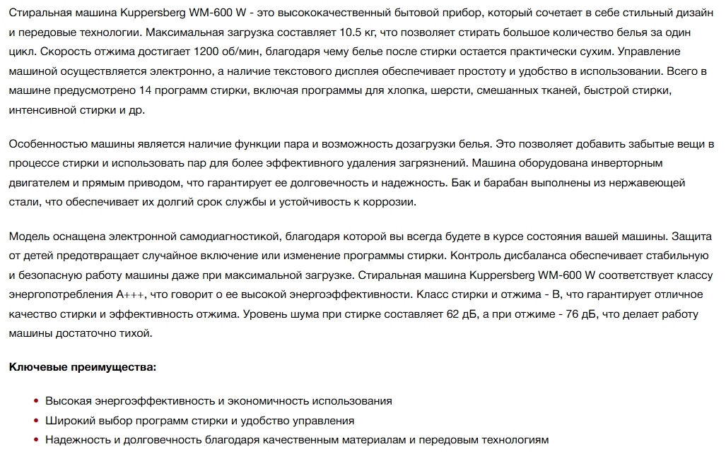 Стиральная машина Kuppersberg (Купперсберг) WM 600 W