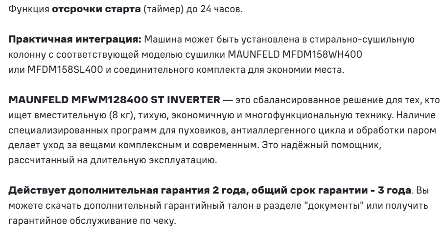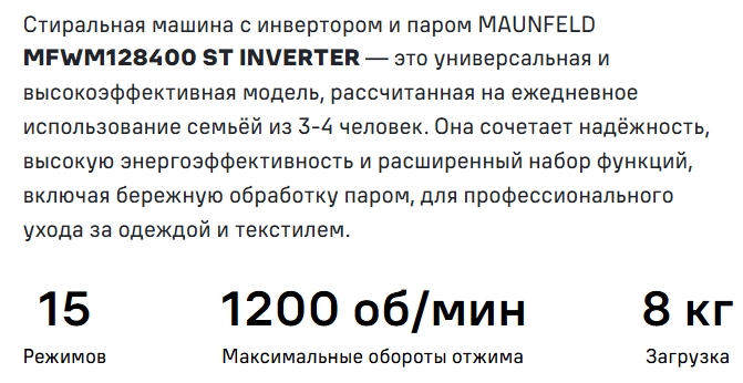 Стиральная машина MAUNFELD (Маунфилд) MFWM128WH400 ST INVERTER