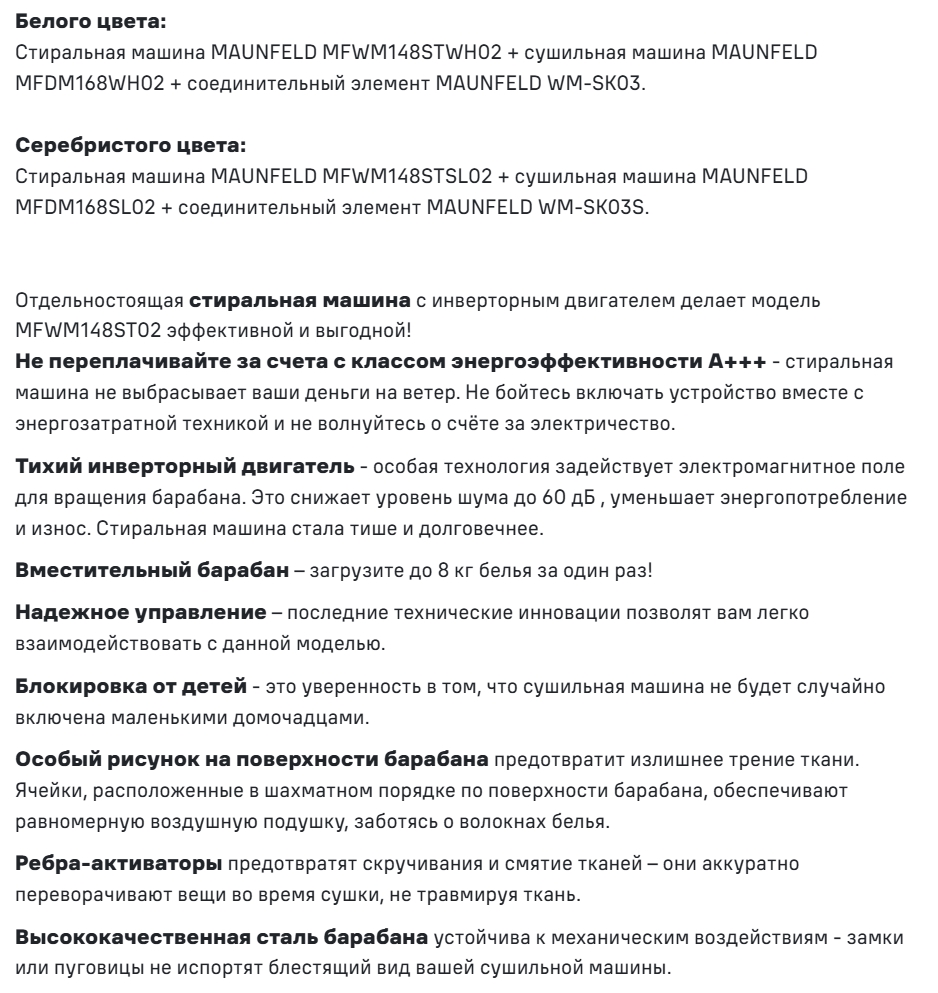 Стиральная машина MAUNFELD (Маунфилд) MFWM148STWH02