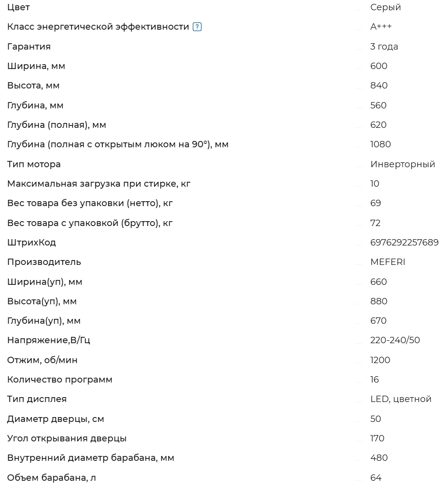 Стиральная машина Meferi (Мефери) MFW101216GR COMFORT