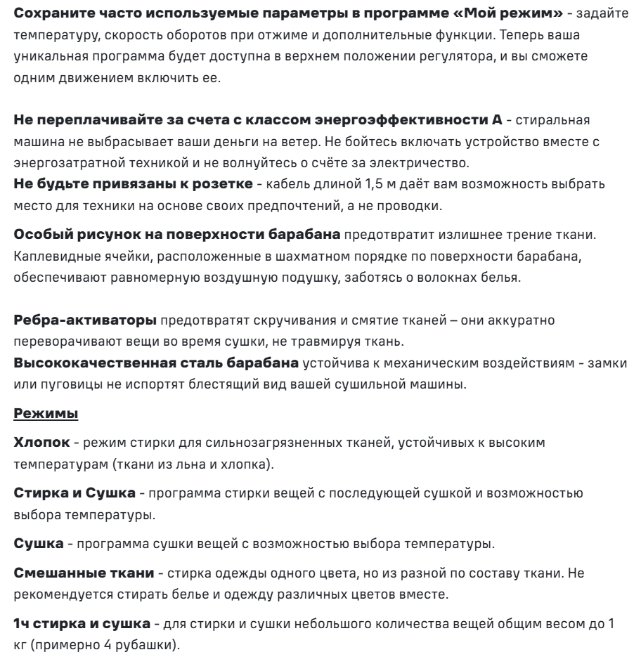 Режимы стирки |