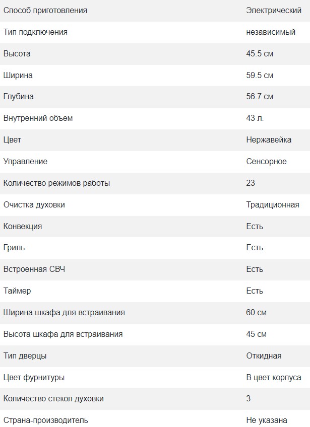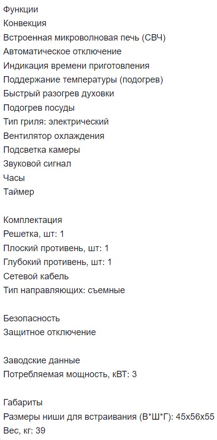Объём духовки |