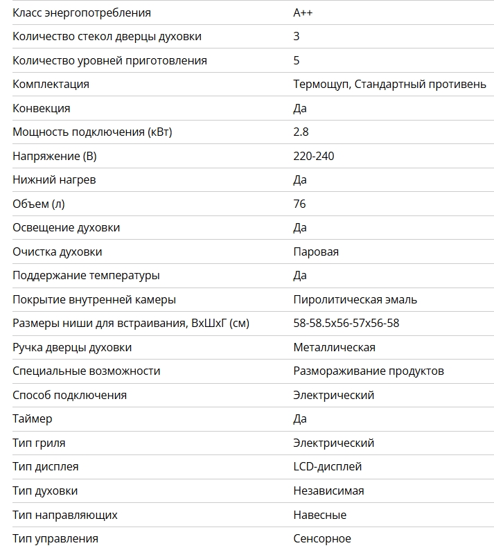 Объём духовки |