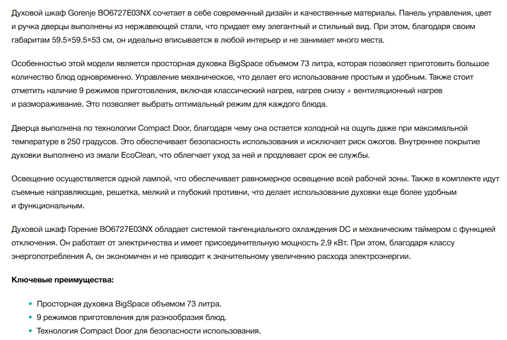 Электрический духовой шкаф Gorenje (Горенье) BO6727E03NX