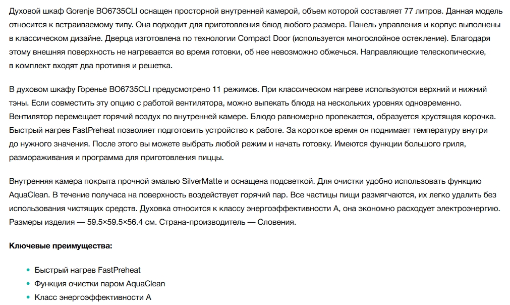 Электрический духовой шкаф Gorenje (Горенье) BO6735CLI