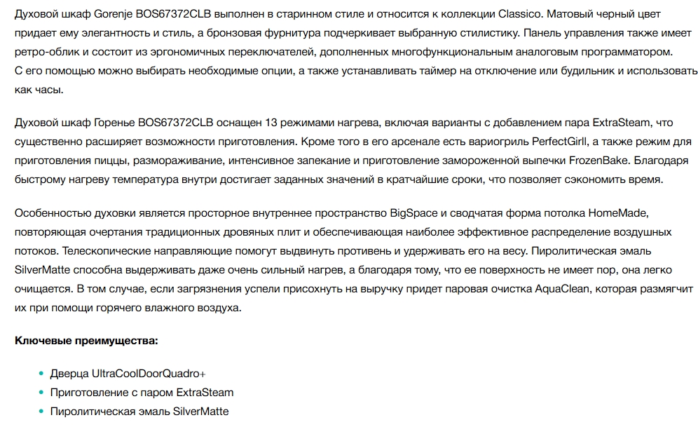 Электрический духовой шкаф Gorenje (Горенье) BOS67372CLB