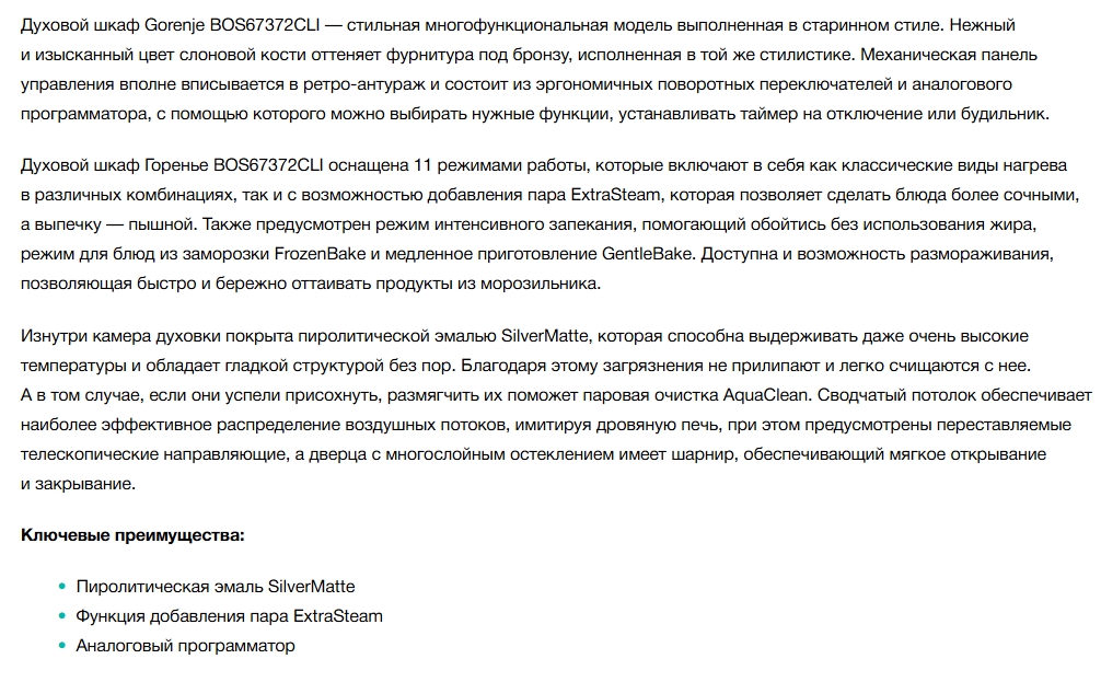 Электрический духовой шкаф Gorenje (Горенье) BOS67372CLI
