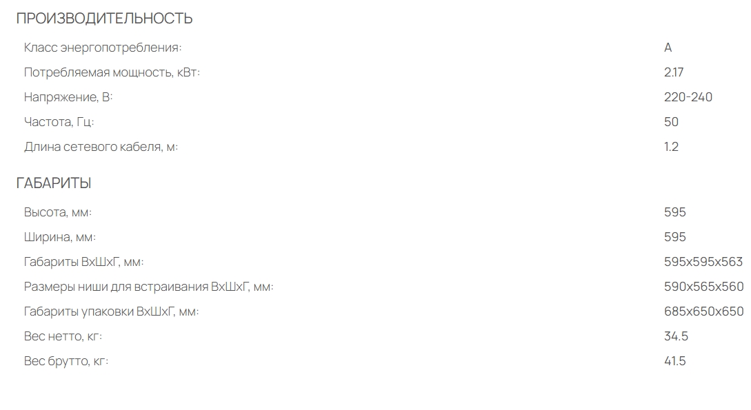 Объём духовки |
