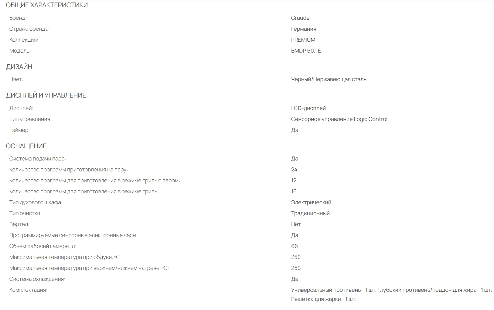 Электрический духовой шкаф Graude (Грауде) BMDP 60.1 E