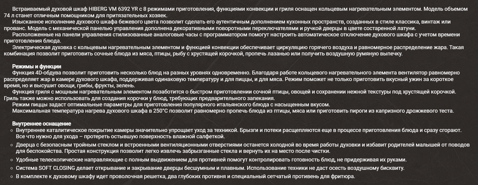 Электрический духовой шкаф Hiberg (Хайберг) VM 6392 YR