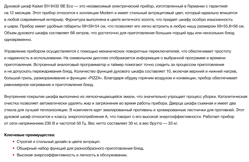 Электрический духовой шкаф Kaiser (Кайзер) EH 6432 BE Eco
