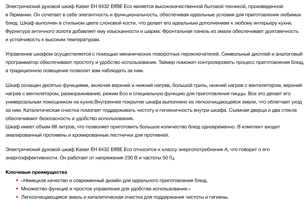 Электрический духовой шкаф Kaiser (Кайзер) EH 6432 ElfBE Eco