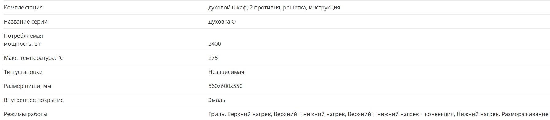 Объём духовки |