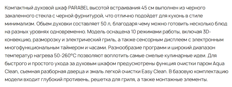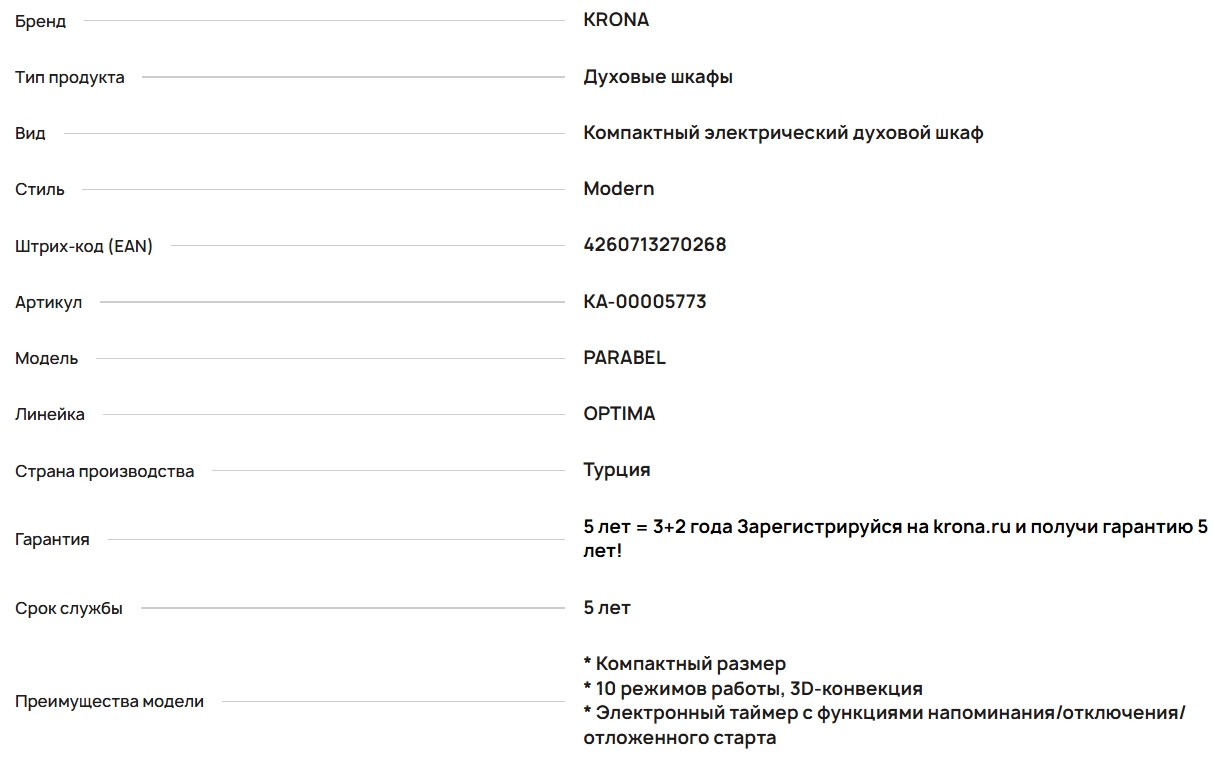 Электрический духовой шкаф Krona (Крона) PARABEL 45H BL