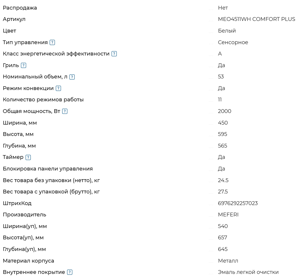 Электрический духовой шкаф Meferi (Мефери) MEO4511WH COMFORT PLUS