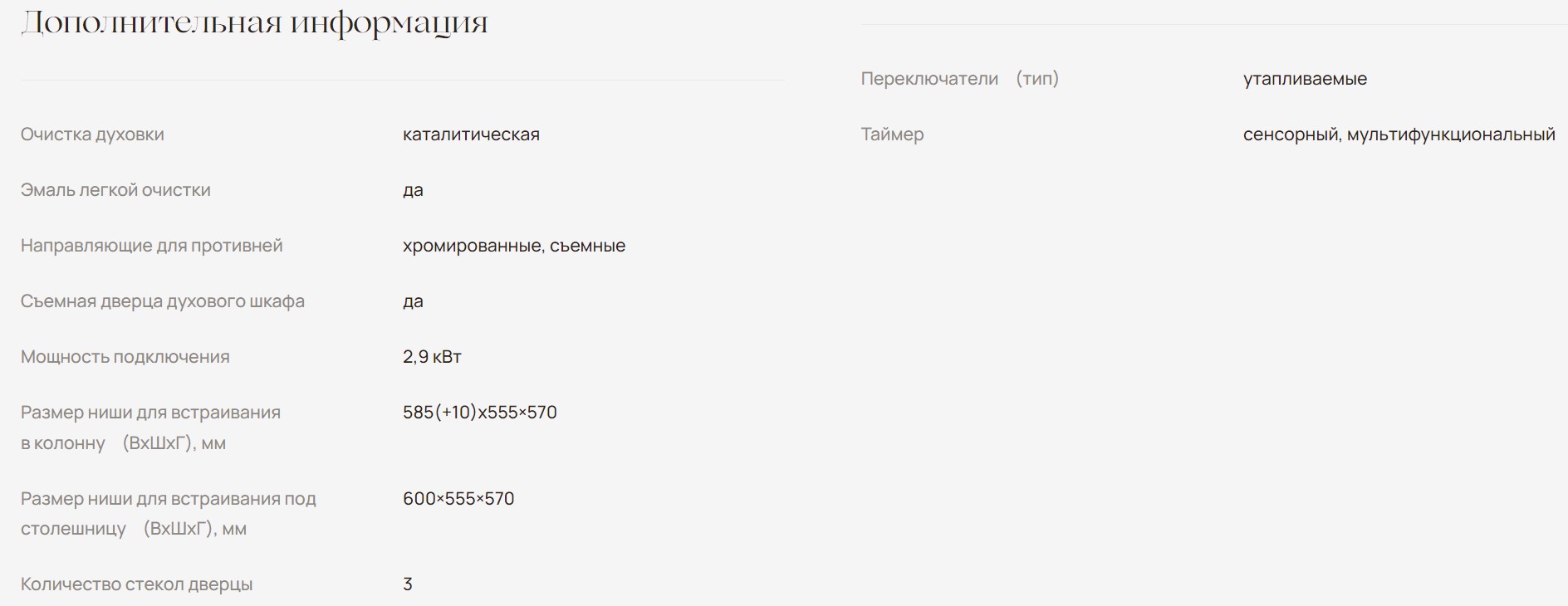 Объём духовки |
