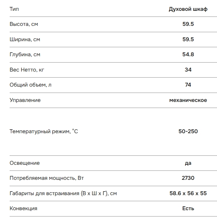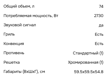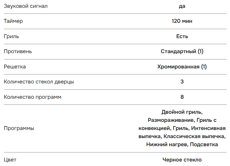 Объём духовки |