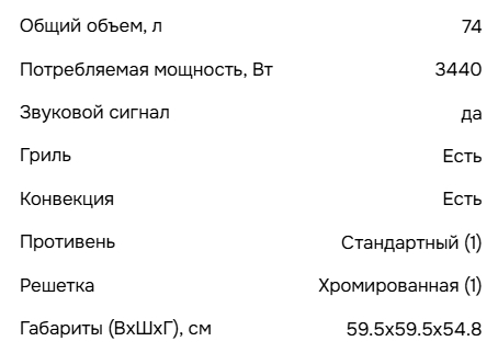 Объём духовки |