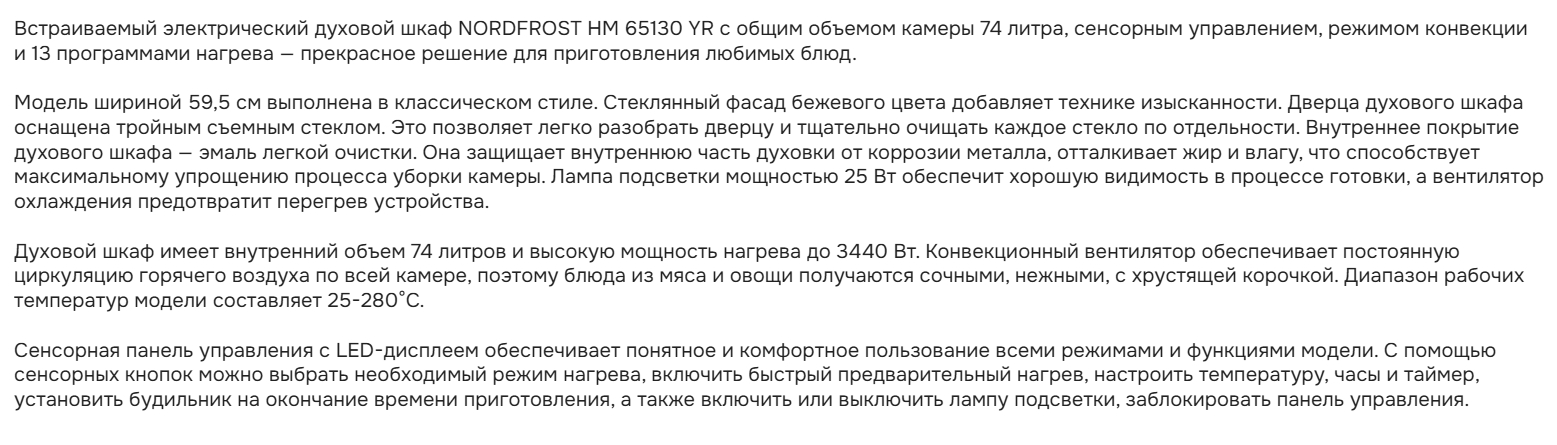 Электрический духовой шкаф NORDFROST (Нордфрост) HM 65130 YR