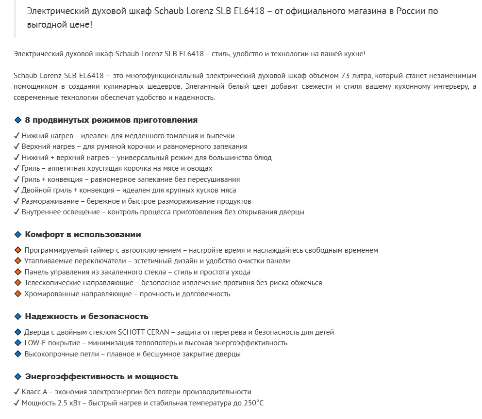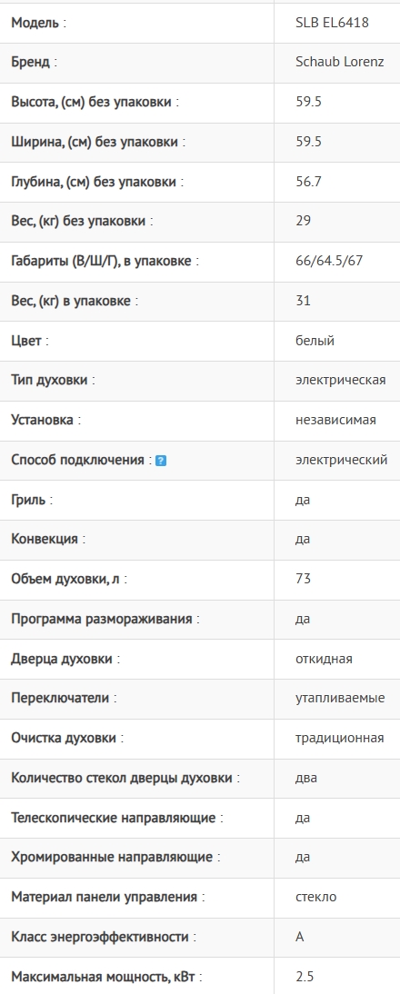 Электрический духовой шкаф Schaub Lorenz (Шауб Лоренц) SLB EL6418