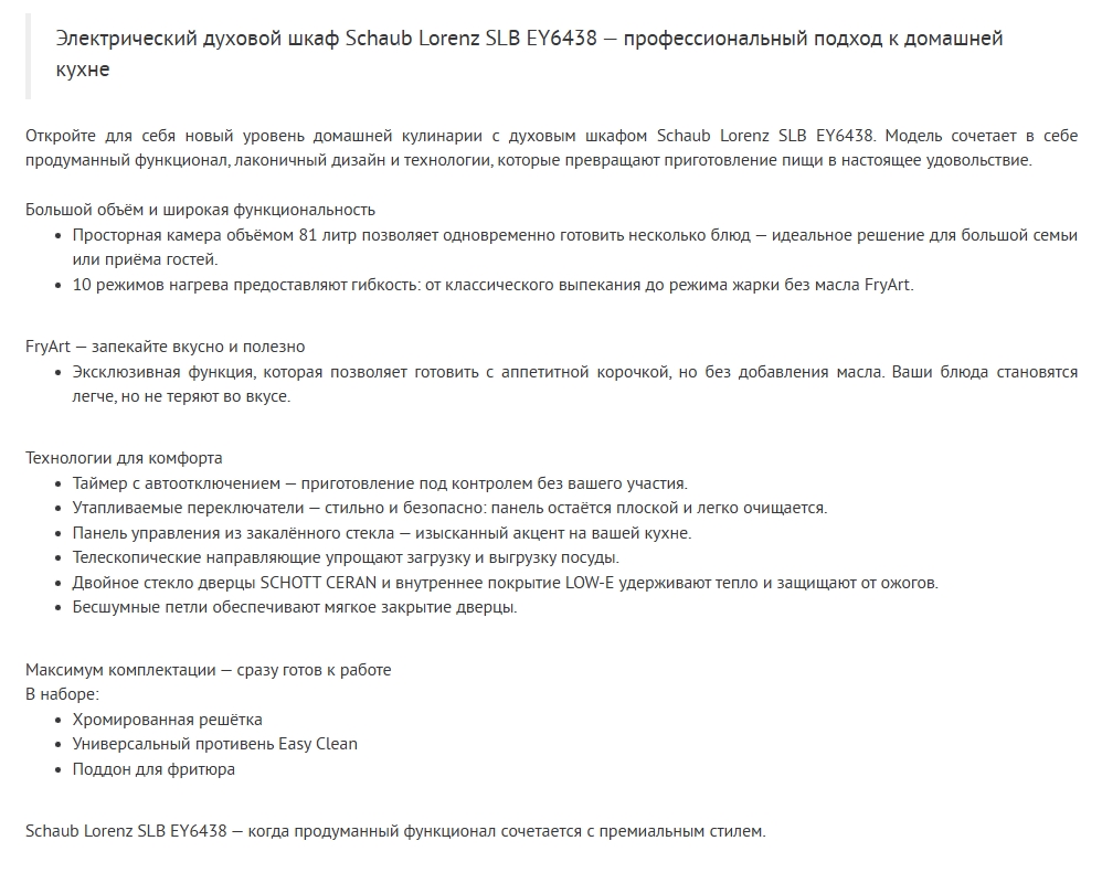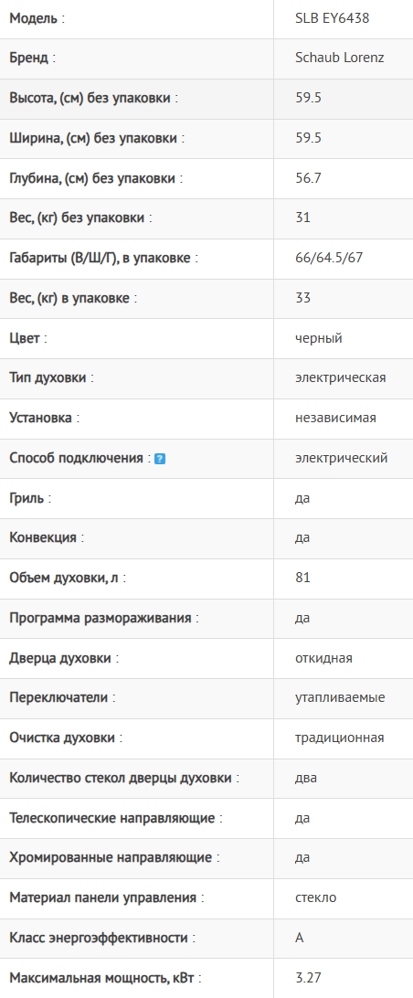 Электрический духовой шкаф Schaub Lorenz (Шауб Лоренц) SLB EY6438